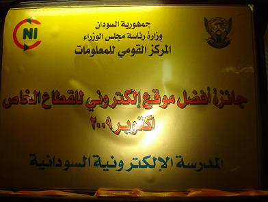 فازت المدرسة الإلكترونية السودانية بجائزة أفضل موقع إلكترونى للقطاع الخاص من المركز القومى للمعلومات.